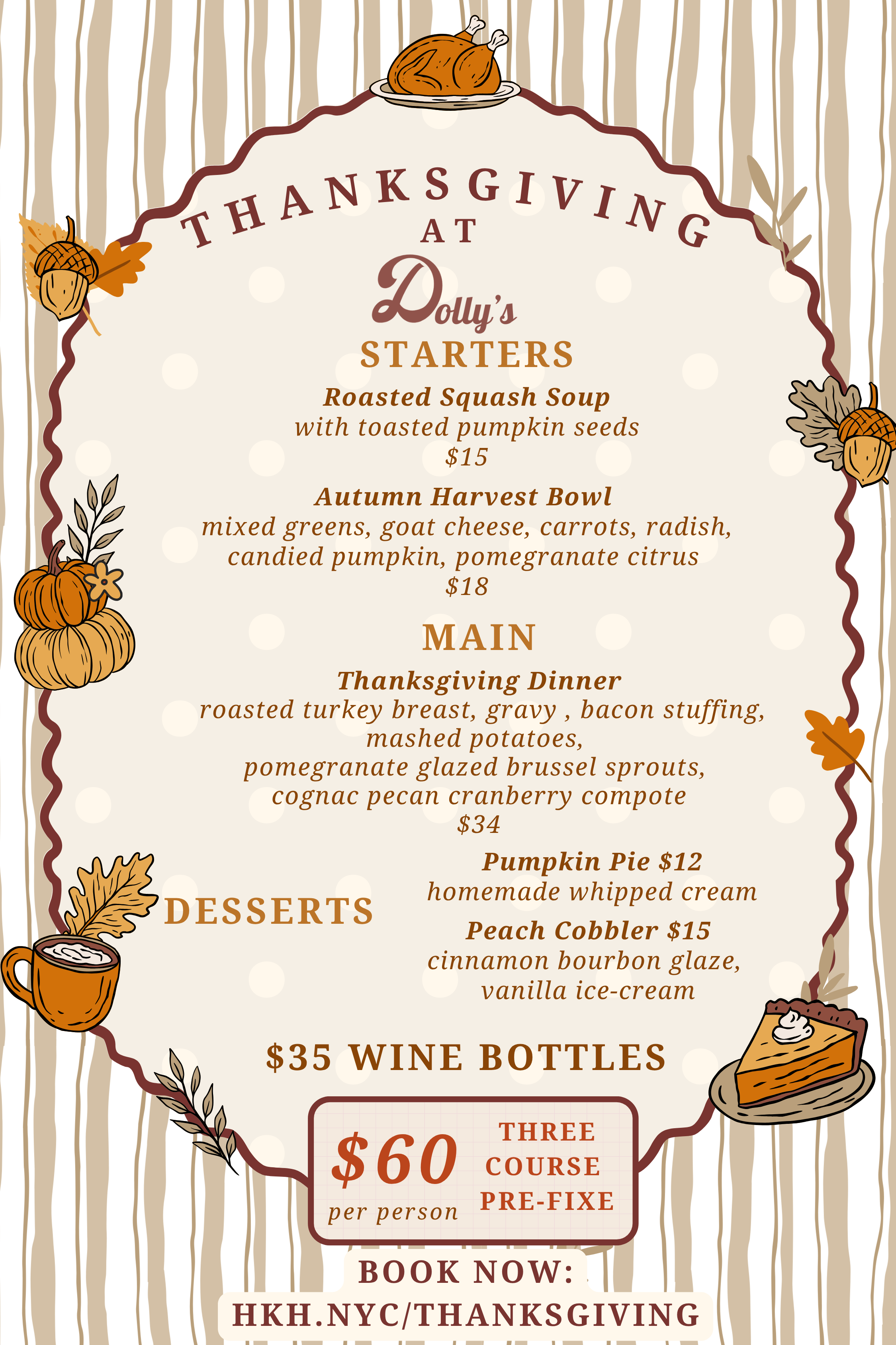 Join us at Dolly's for a Thanksgiving Feast this year. We will be serving our full menu as well. Book your table today.